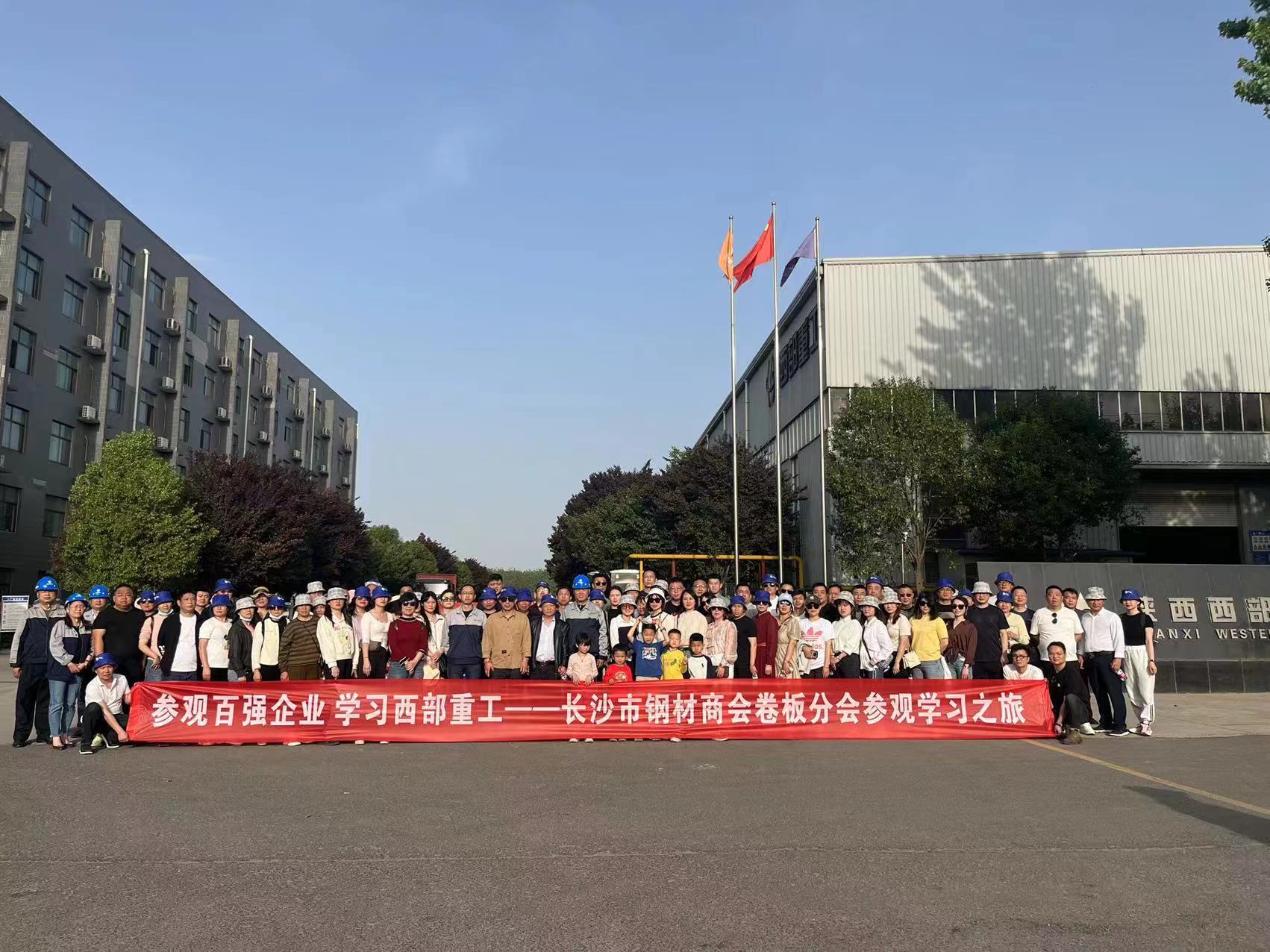 2023年4月15日下午,长沙市钢材商会卷板分会一行118人,在湖南中钢智能制造股份有限公司总经办总经理助理岳东风的带领下莅临陕西西部重工有限公司进行参观。我公司对其来访表示热烈的欢迎,由副总经理丁嘉奕、杨朋涛、财务部部长王红、综合部部长兼供管部部长谭义清、安环部副部长陈广利等进行了热情的接待。