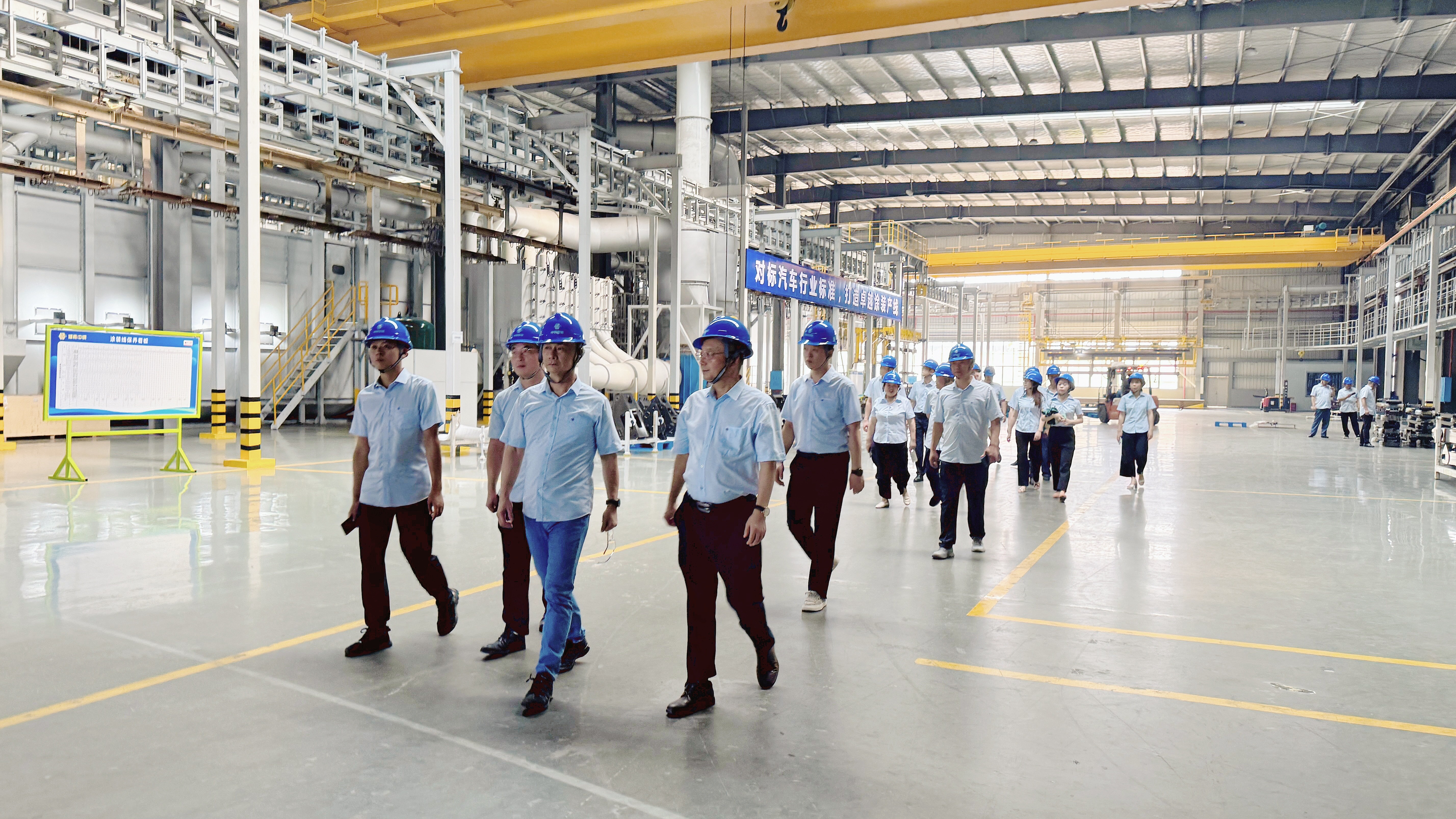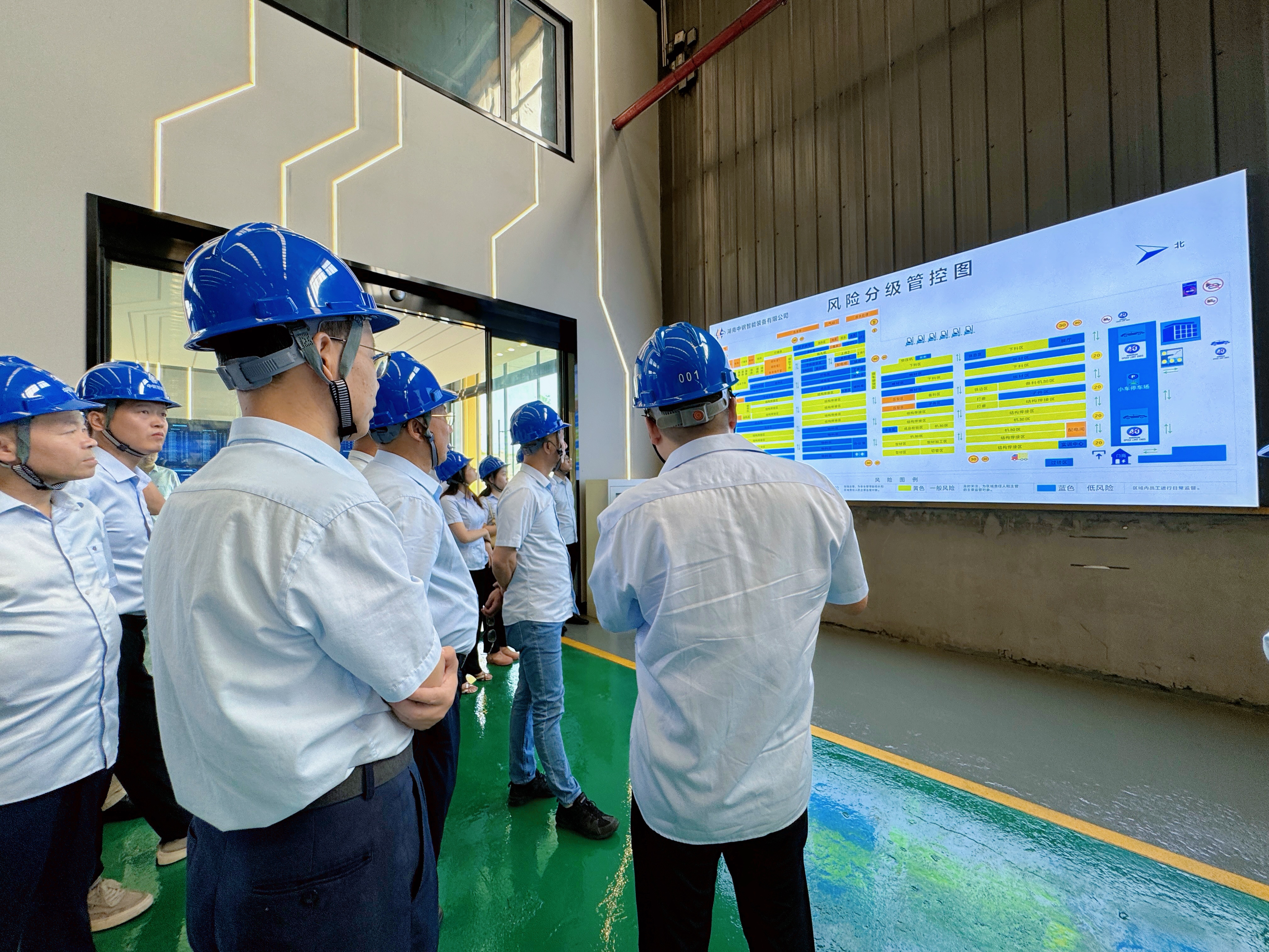 在集团及湖南中钢智能装备有限公司(简称:“装备”)岳文超总经理的带领下,全体参会人员在湖南中钢标杆工厂--装备进行了参观学习。从装备的智能化数字展厅到干净明亮的自动化涂装生产线,再到厂区每一个精益生产细节的规范展示以及实训中心,装备的数字化智能化和厂区的精细化管理让各参会人员都有深切的体会和学习收获。